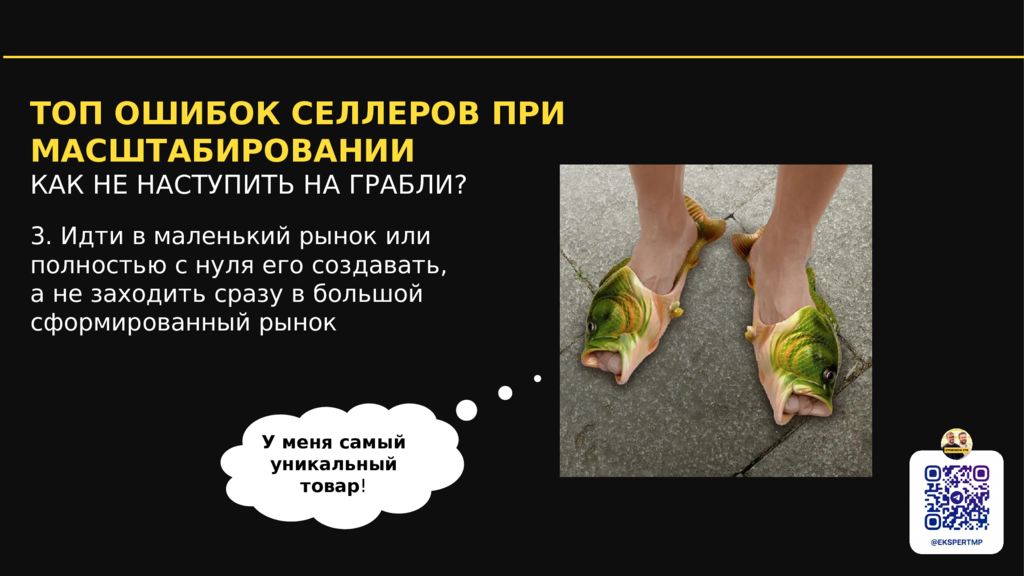ТОП ОШИБОК СЕЛЛЕРОВ ПРИ МАСШТАБИРОВАНИИ КАК НЕ НАСТУПИТЬ НА ГРАБЛИ? 3. Идти в маленький рынок или полностью с нуля его создавать, а не заходить сразу в большой сформированный рынок У меня самый уникальный товар !