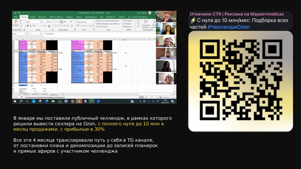 В январе мы поставили публичный челлендж, в рамках которого решили вывести селлера на Ozon, с полного нуля до 10 млн в месяц продажами, с прибылью в 30% Все эти 4 месяца транслировали путь у себя в TG канале, от постановки плана и декомпозиции до записей планерок и прямых эфиров с участником челленджа