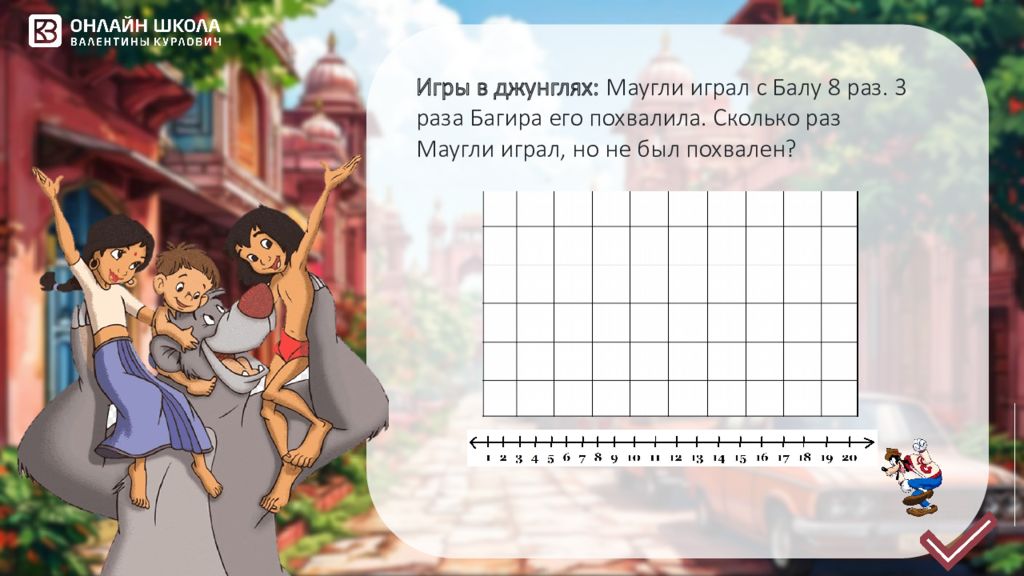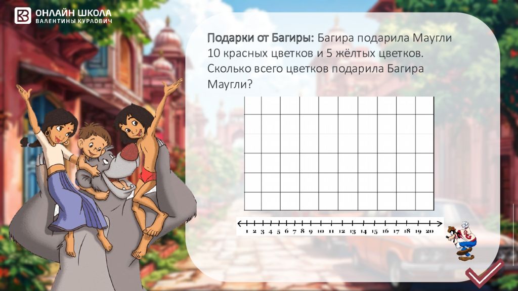 Помощь другу: Маугли помог Багире 4 раза и Балу 3 раза. Сколько всего раз Маугли помог своим друзьям?