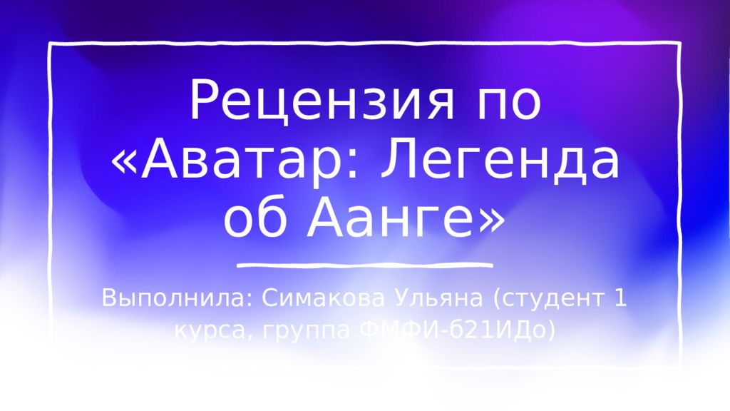 Первый слайд презентации: Рецензия по «Аватар: Легенда об Аанге»