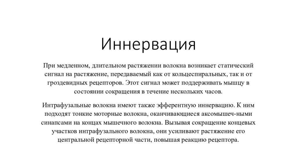 Последний слайд презентации: Рецепторное нервное окончание (нервно-мышечное веретено): Иннервация