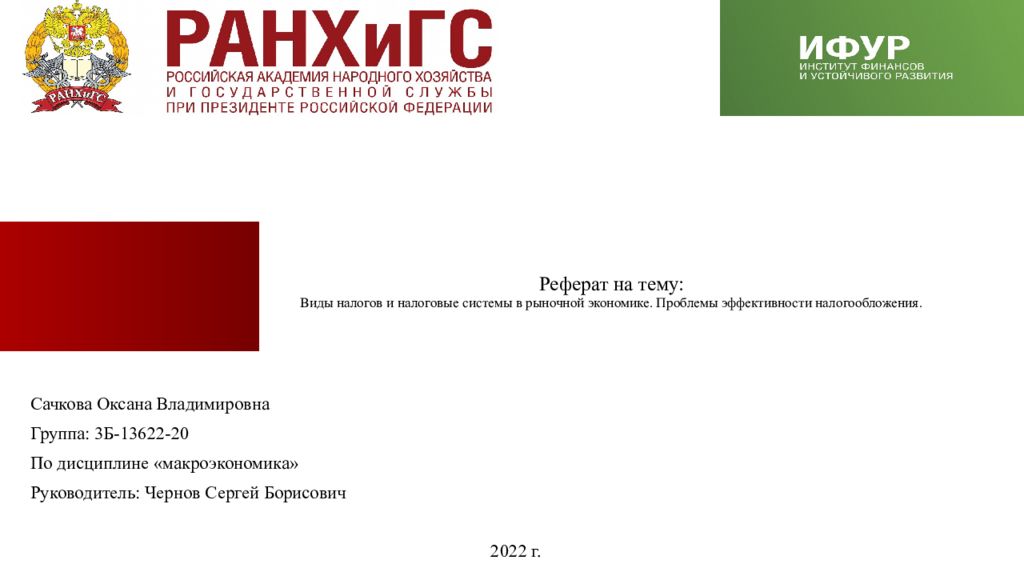 Сачкова Оксана Владимировна Группа: 3Б-13622-20 П о дисциплине «макроэкономика» Руководитель: Чернов Сергей Борисович 2022 г.