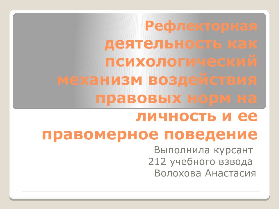 Первый слайд презентации: Рефлекторная деятельность как психологический механизм воздействия правовых норм на личность и ее правомерное поведение