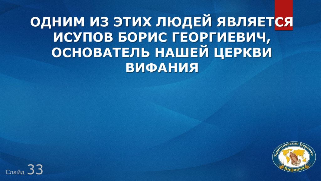 Слайд 3 3 Одним из этих людей является Исупов Борис Георгиевич, основатель нашей церкви Вифания