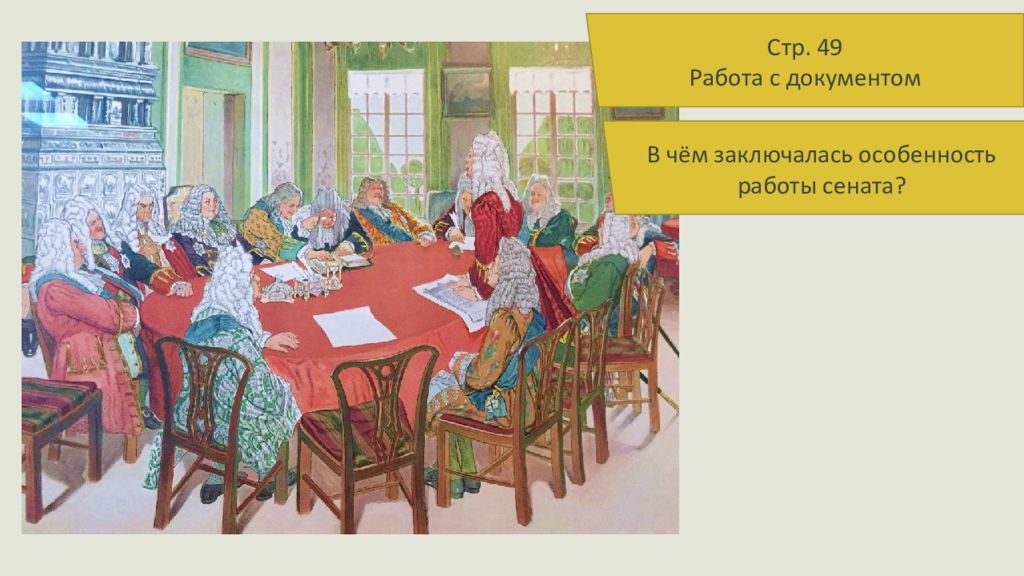 Стр. 49 Работа с документом В чём заключалась особенность работы сената? Павел Иванович Ягужинский «Око государево»