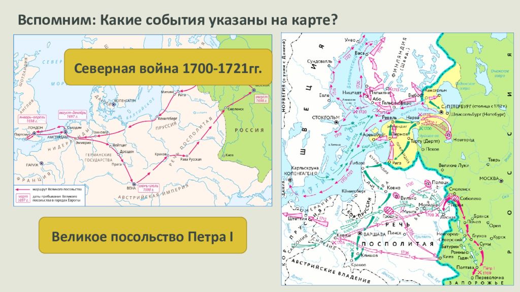 Слайд 4: Вспомним: Какие события указаны на карте?