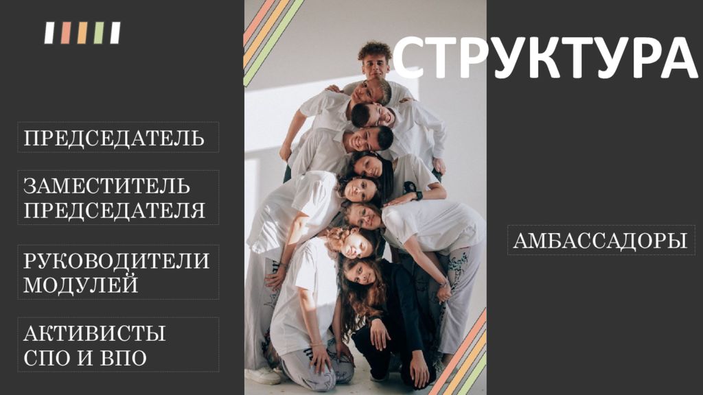 СТРУКТУРА ПРЕДСЕДАТЕЛЬ ЗАМЕСТИТЕЛЬ ПРЕДСЕДАТЕЛЯ АМБАССАДОРЫ РУКОВОДИТЕЛИ МОДУЛЕЙ АКТИВИСТЫ СПО И ВПО