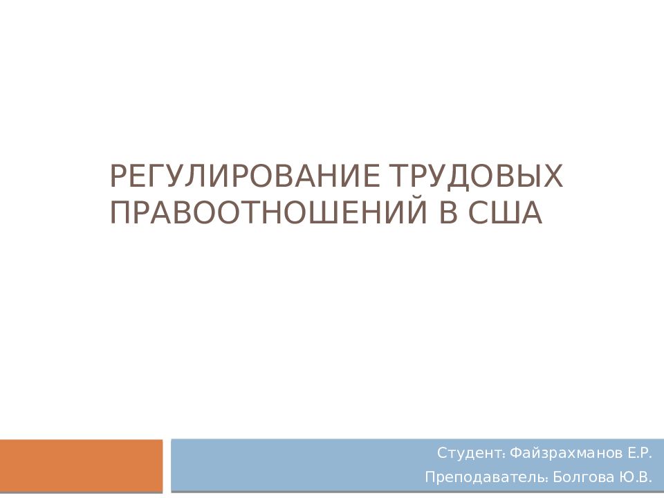 Первый слайд презентации: Регулирование трудовых правоотношений в сша