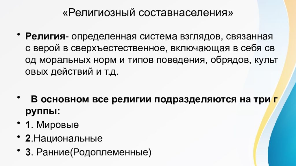 Первый слайд презентации: Религиозный состав населения