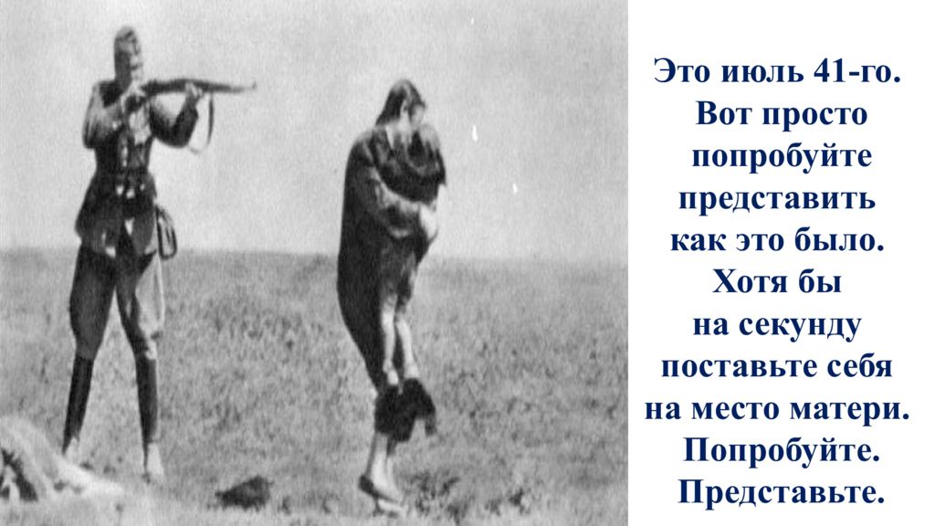 Это июль 41-го. Вот просто попробуйте представить как это было. Хотя бы на секунду поставьте себя на место матери. Попробуйте. Представьте.
