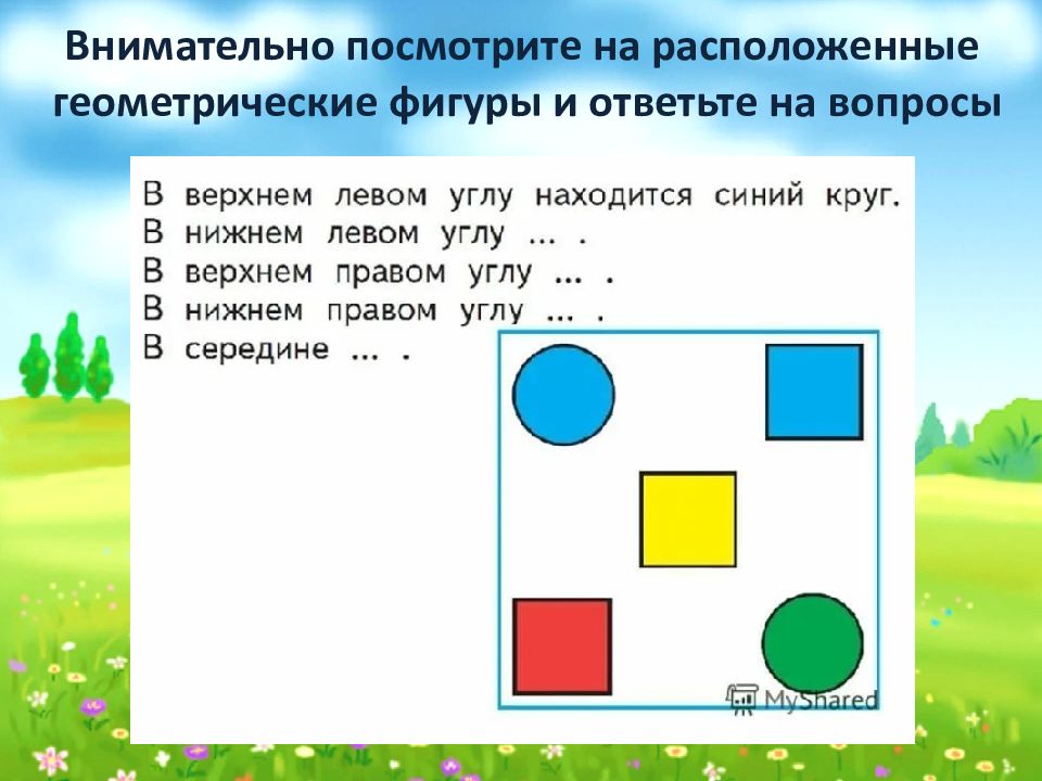 Внимательно посмотрите на расположенные геометрические фигуры и ответьте на вопросы