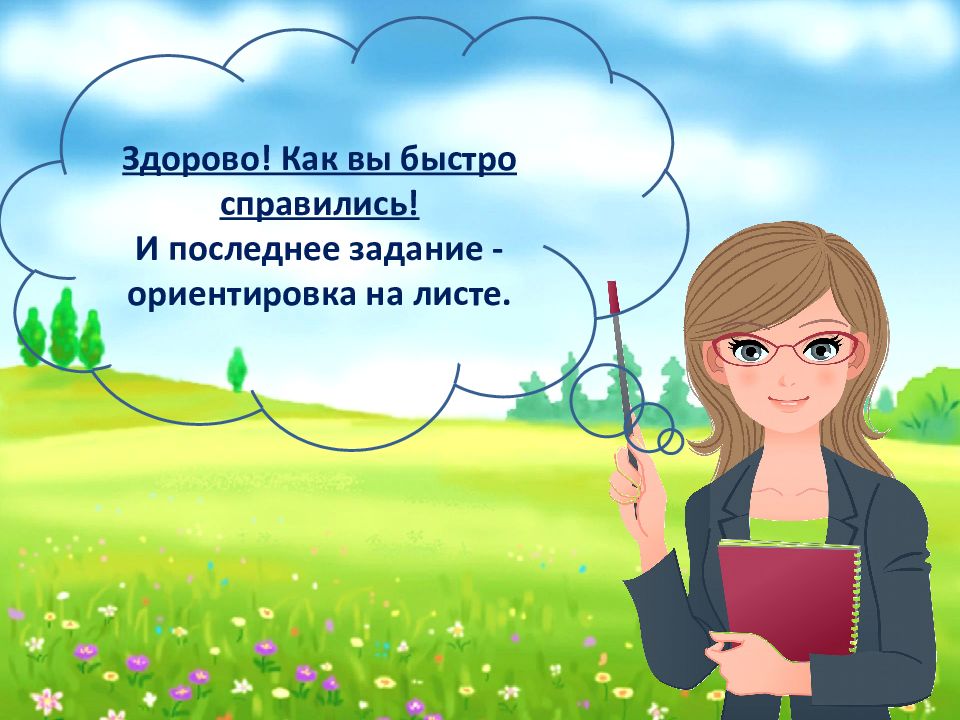 Здорово! Как вы быстро справились! И последнее задание - ориентировка на листе.