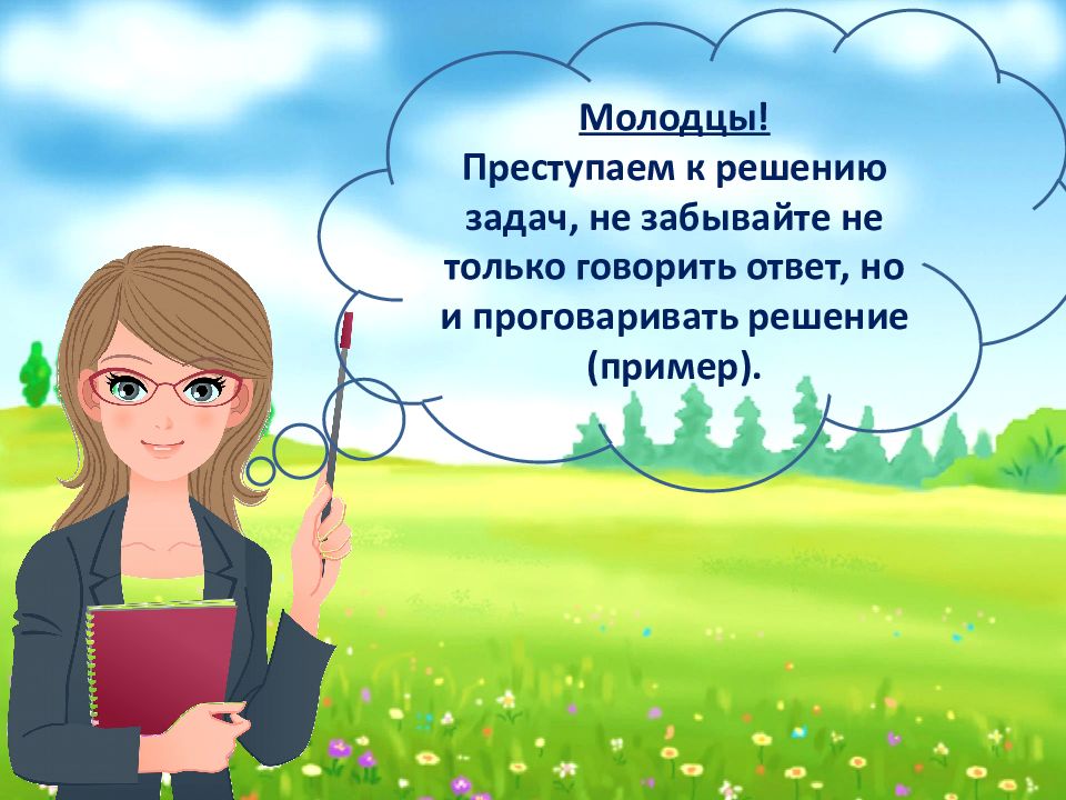 Молодцы! Преступаем к решению задач, не забывайте не только говорить ответ, но и проговаривать решение (пример).