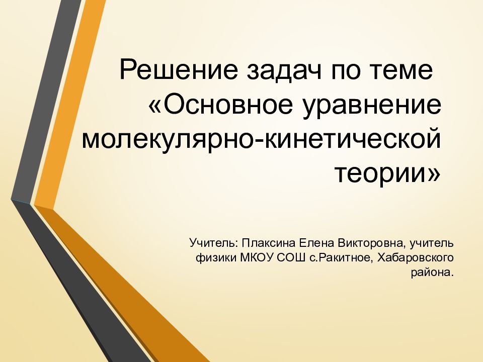 Первый слайд презентации: Решение задач по теме «Основное уравнение молекулярно-кинетической теории»