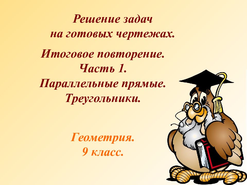 Решение задач на готовых чертежах. Геометрия. 9 класс. Итоговое повторение. Часть 1. Параллельные прямые. Треугольники.