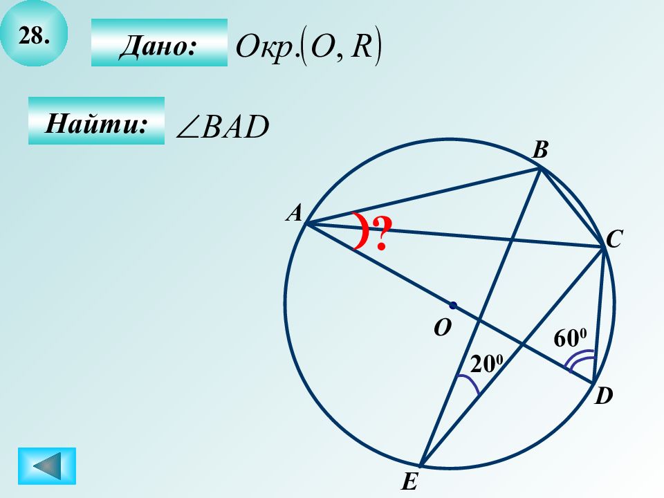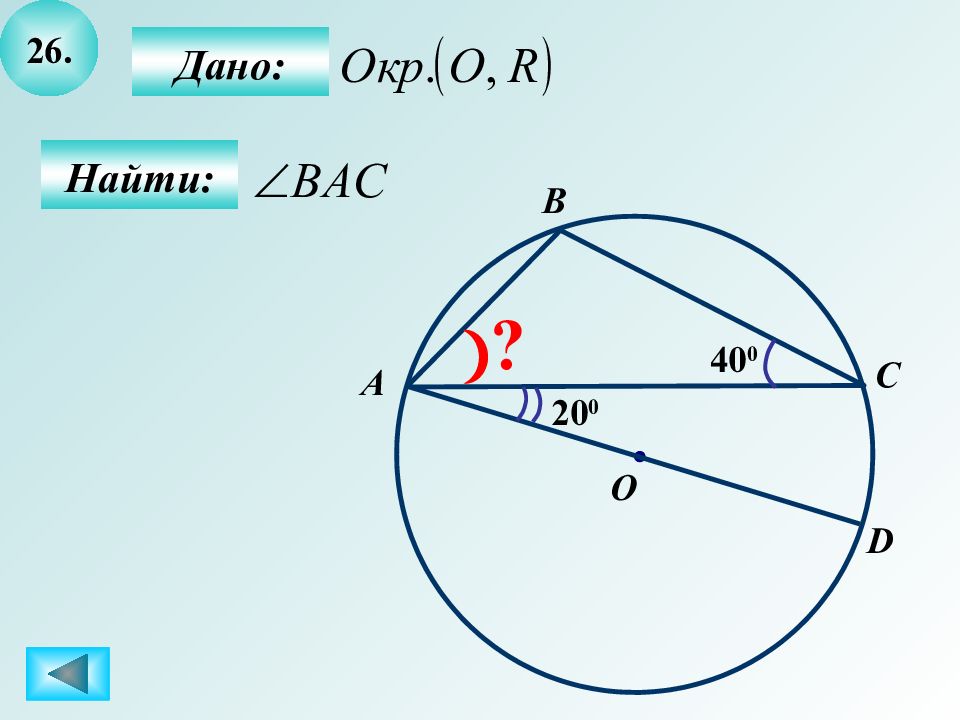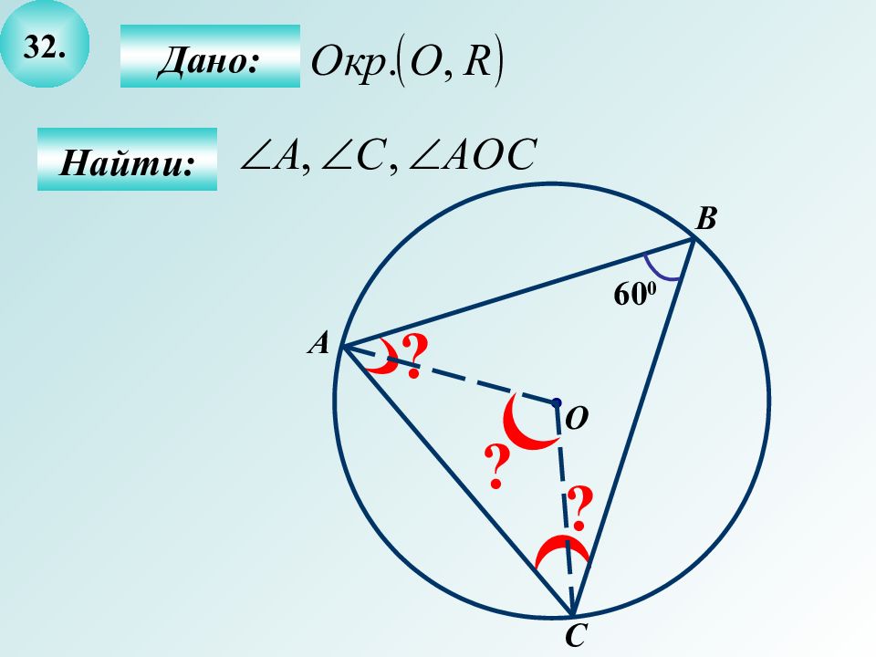 Решение задач на готовых чертежах. Окружность. Центральные и вписанные углы. Геометрия. 8 класс.