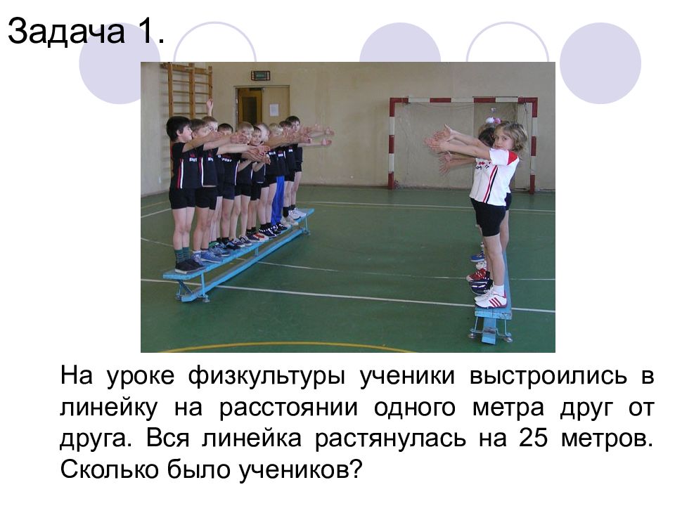 На уроке физкультуры ученики выстроились в линейку на расстоянии одного метра друг от друга. Вся линейка растянулась на 25 метров. Сколько было учеников?