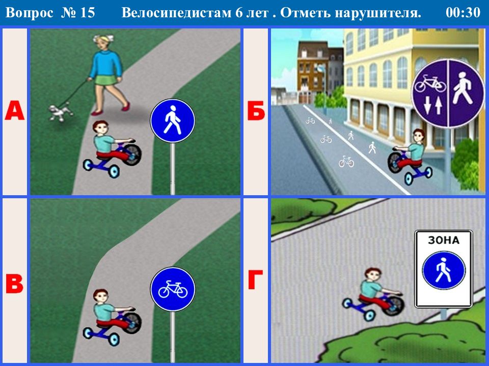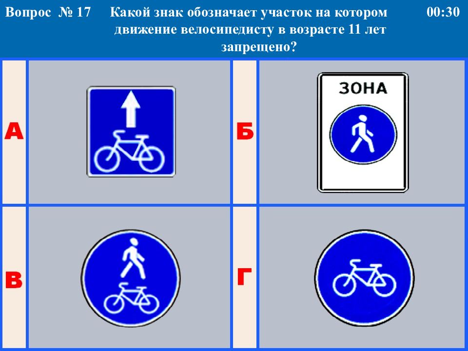 Какой знак обозначает участок на котором движение велосипедисту в возрасте 11 лет запрещено? Вопрос № 17 00:30