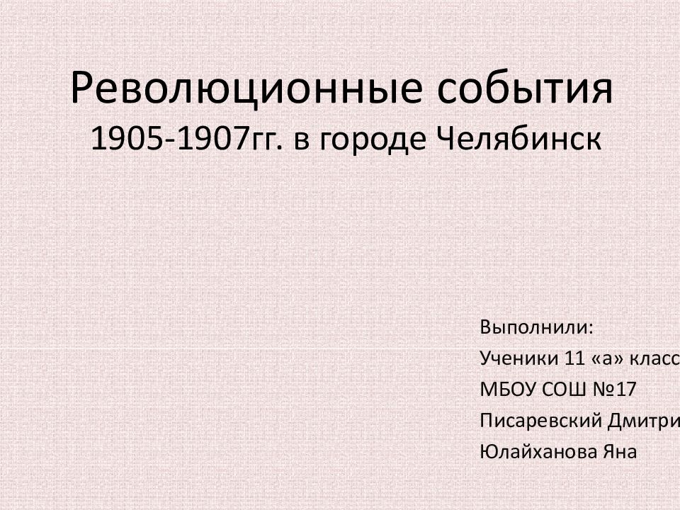 Первый слайд презентации: Революционные события 1905-1907гг. в городе Челябинск