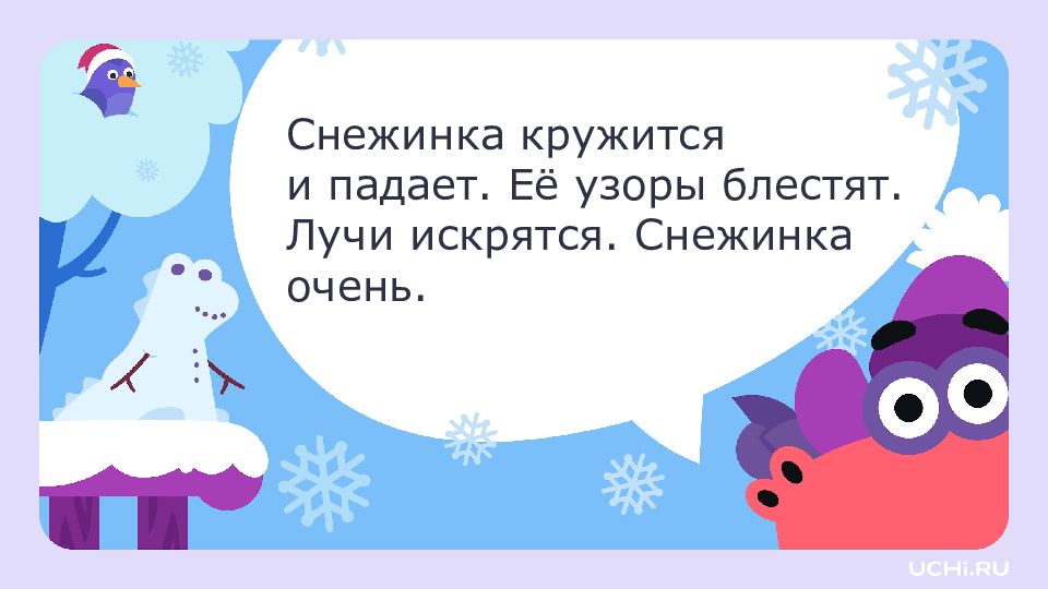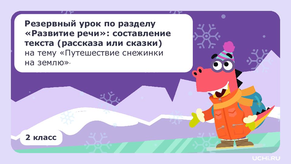 Резервный урок по разделу « Развитие речи » : составление текста (рассказа или сказки) на тему «Путешествие снежинки на землю» " 2 класс