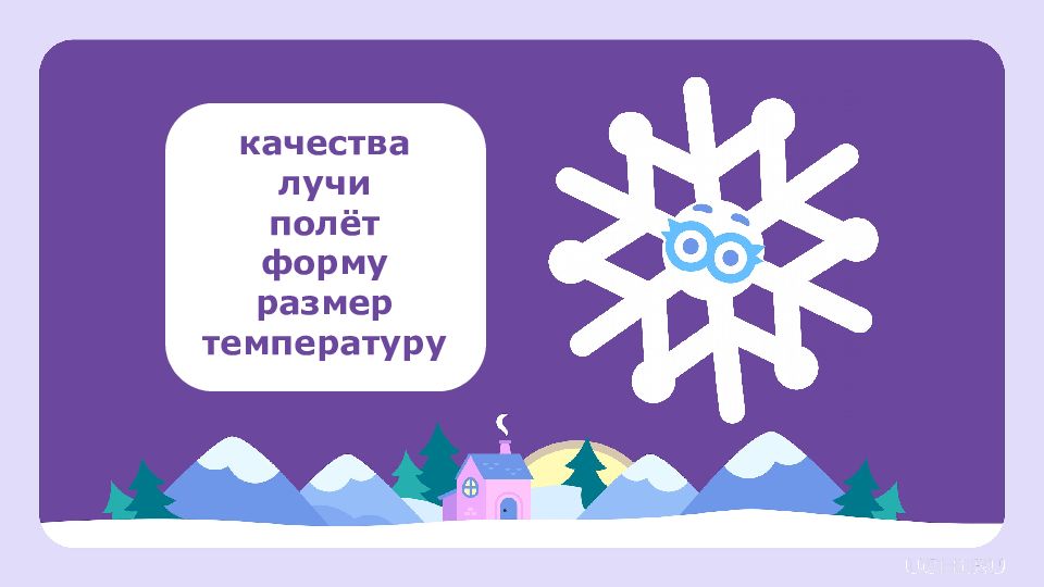 Снежинка кружится и падает. Её узоры блестят. Лучи искрятся. Снежинка очень.
