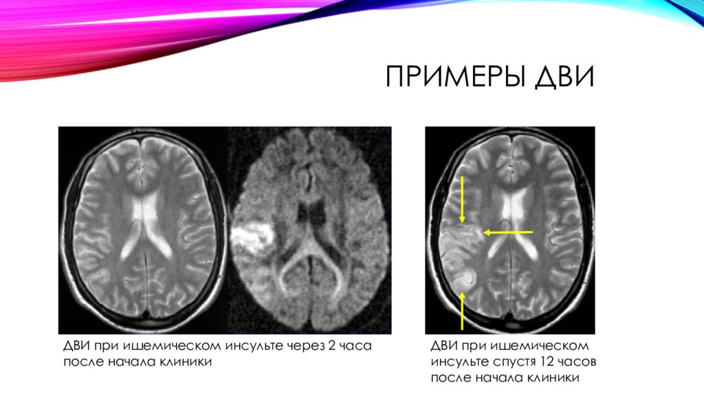 ДВИ при ишемическом инсульте через 2 часа после начала клиники ДВИ при ишемическом инсульте спустя 12 часов после начала клиники
