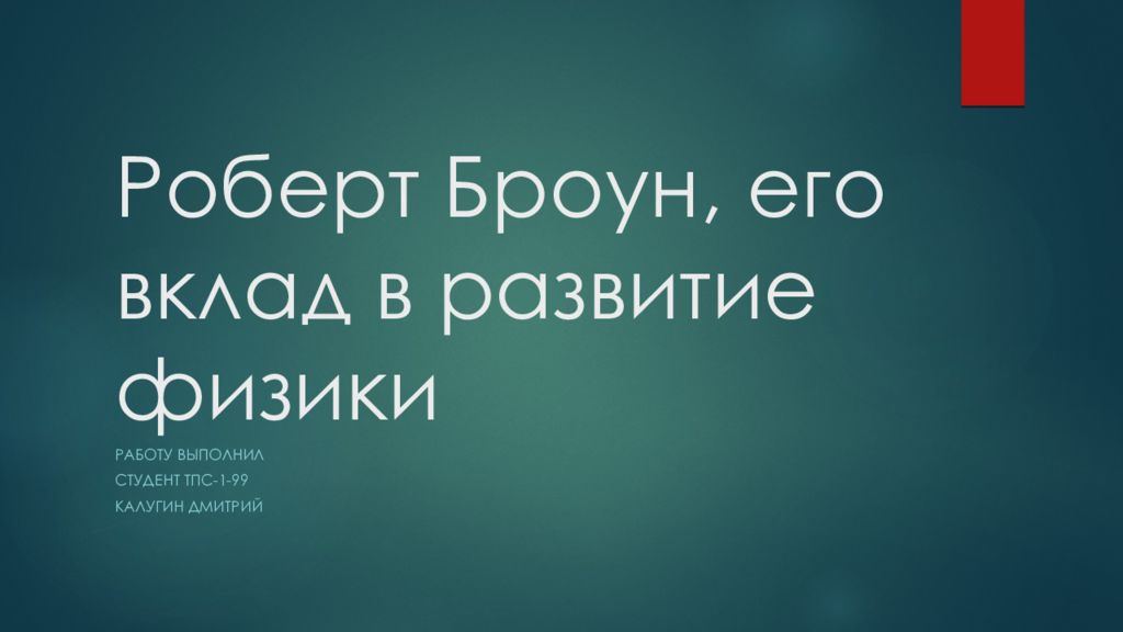 Первый слайд презентации: Роберт Броун, его вклад в развитие физики