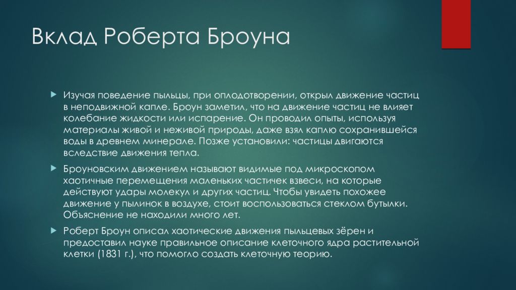 Слайд 4: Вклад Роберта Броуна