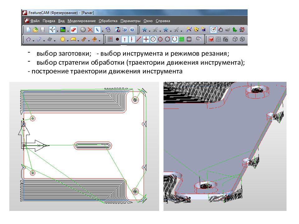 выбор заготовки; - выбор инструмента и режимов резания; выбор стратегии обработки (траектории движения инструмента); - построение траектории движения инструмента