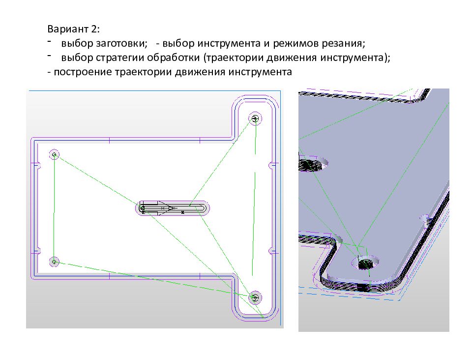 Вариант 2: выбор заготовки; - выбор инструмента и режимов резания; выбор стратегии обработки (траектории движения инструмента); - построение траектории движения инструмента
