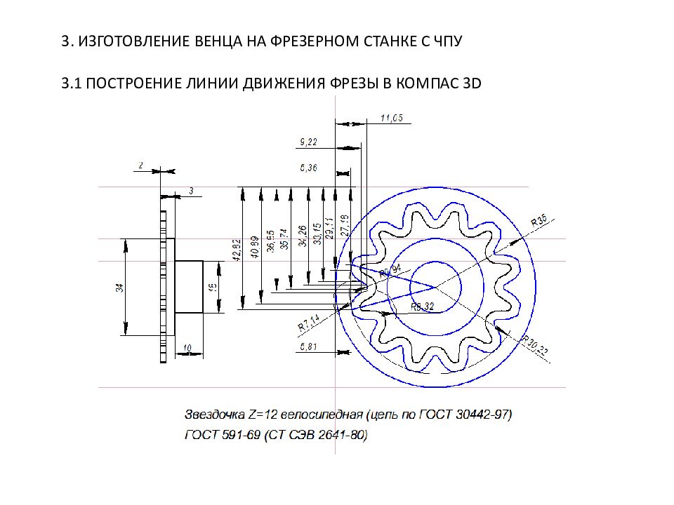 3. ИЗГОТОВЛЕНИЕ ВЕНЦА НА ФРЕЗЕРНОМ СТАНКЕ С ЧПУ 3.1 ПОСТРОЕНИЕ ЛИНИИ ДВИЖЕНИЯ ФРЕЗЫ В КОМПАС 3 D
