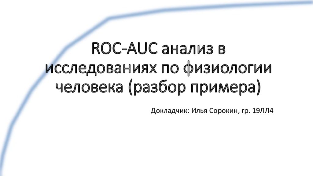 Первый слайд презентации: ROC-AUC анализ в исследованиях по физиологии человека (разбор примера)