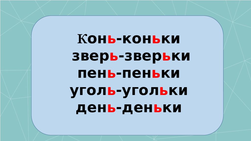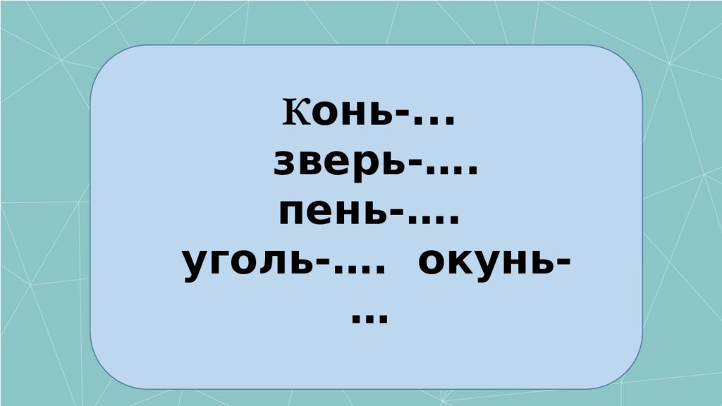 К о н ь -кон ь ки звер ь -звер ь ки пен ь -пен ь ки угол ь -угол ь ки ден ь -ден ь ки
