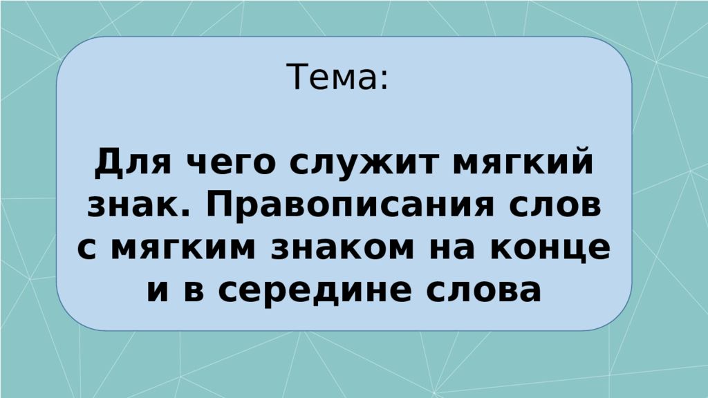 Тема: Для чего служит мягкий знак. Правописания слов с мягким знаком на конце и в середине слова