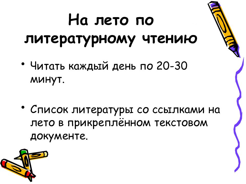 Читать каждый день по 20-30 минут. Список литературы со ссылками на лето в прикреплённом текстовом документе.