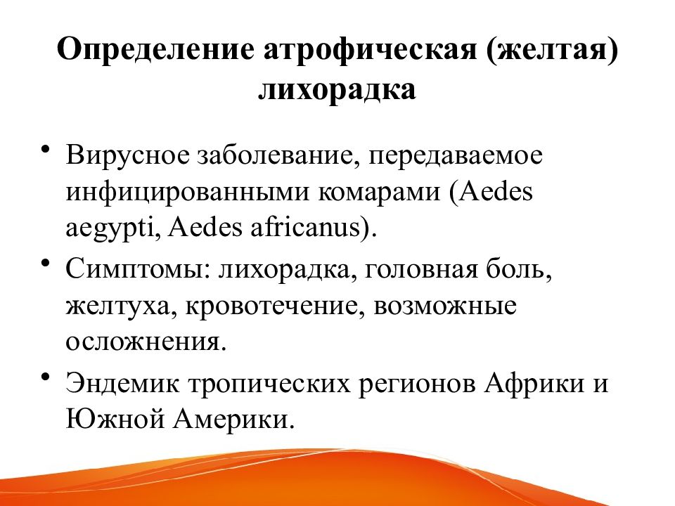 Слайд 2: Определение атрофическая (желтая) лихорадка