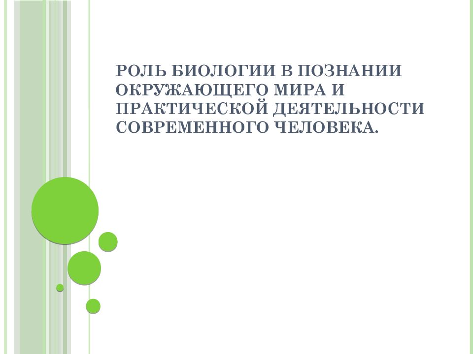 Первый слайд презентации: Роль биологии в познании окружающего мира и практической деятельности современного человека