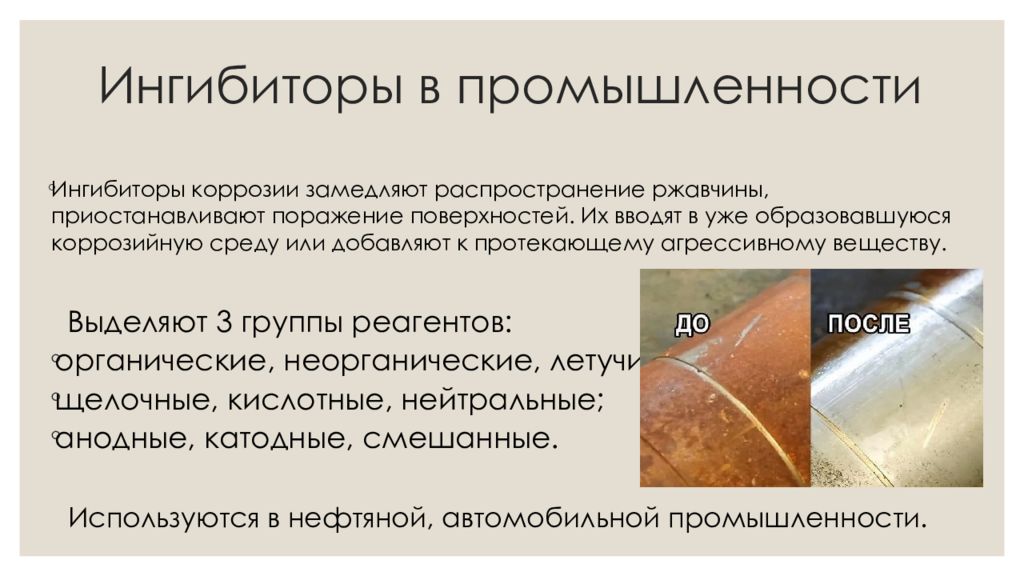 Слайд 4: Ингибиторы в промышленности