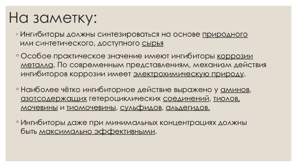 Последний слайд презентации: Роль ингибиторов в современности: На заметку:
