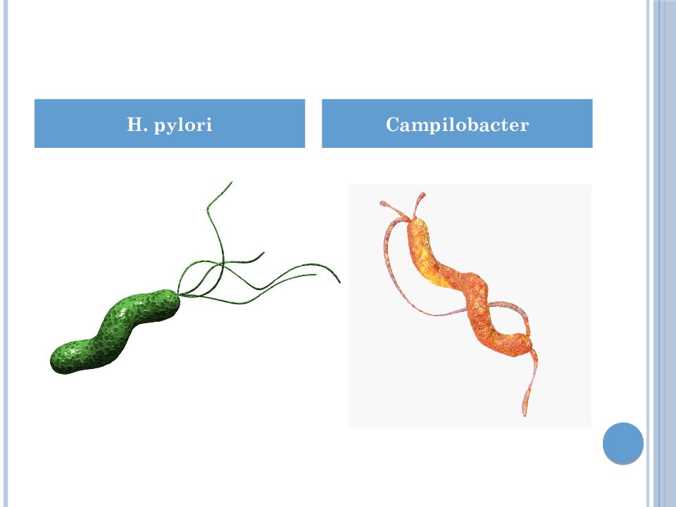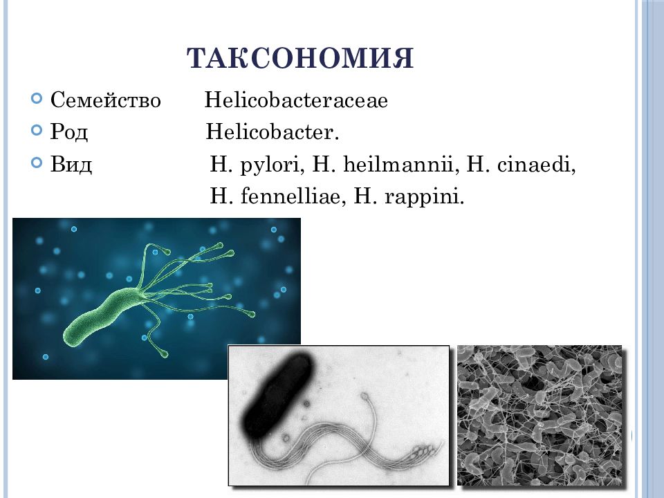 Семейство Helicobacteraceae Р од Helicobacter. Вид Н. pylori, H. heilmannii, H. cinaedi, H. fennelliae, H. rappini.