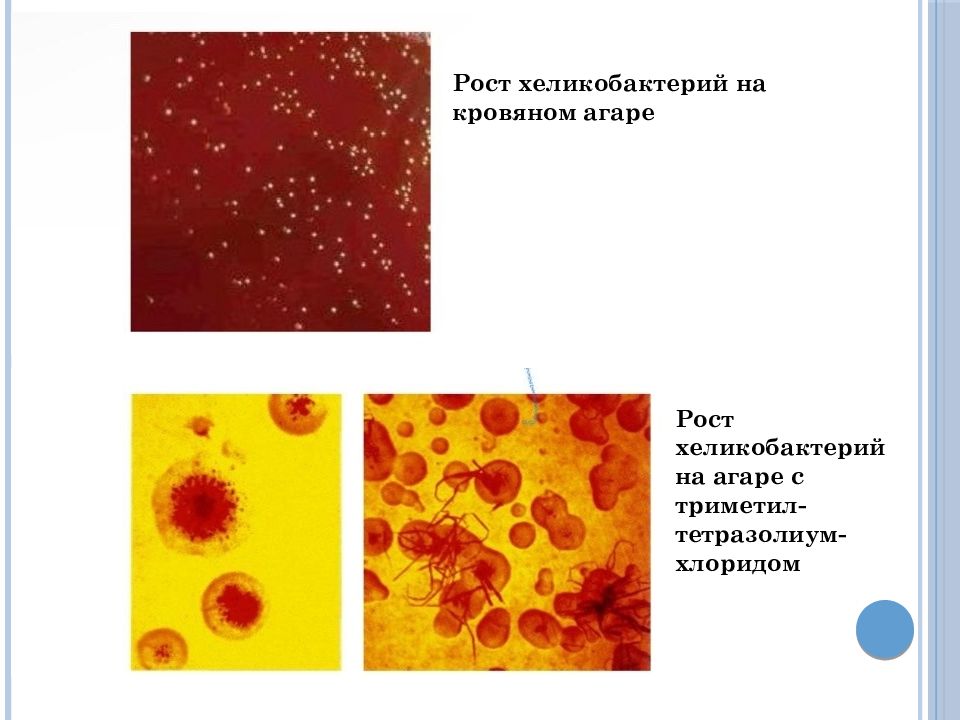 Рост хеликобактерий на кровяном агаре Рост хеликобактерий на агаре с триметил - тетразолиум -хлоридом