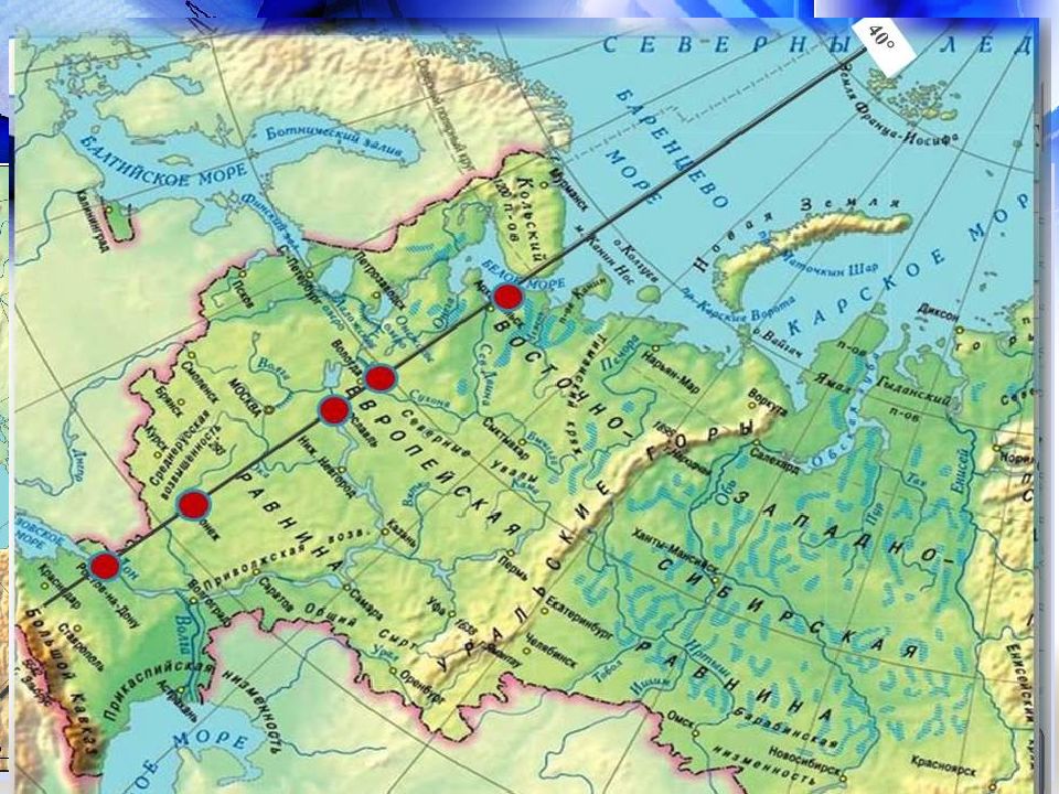 А Б В Г Местное время Определение местного времени - время одного меридиана Д Города, расположенные на 40 меридиане