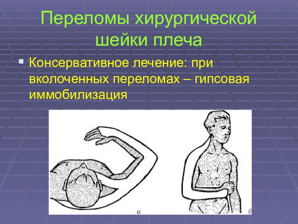 Консервативное лечение: при вколоченных переломах – гипсовая иммобилизация