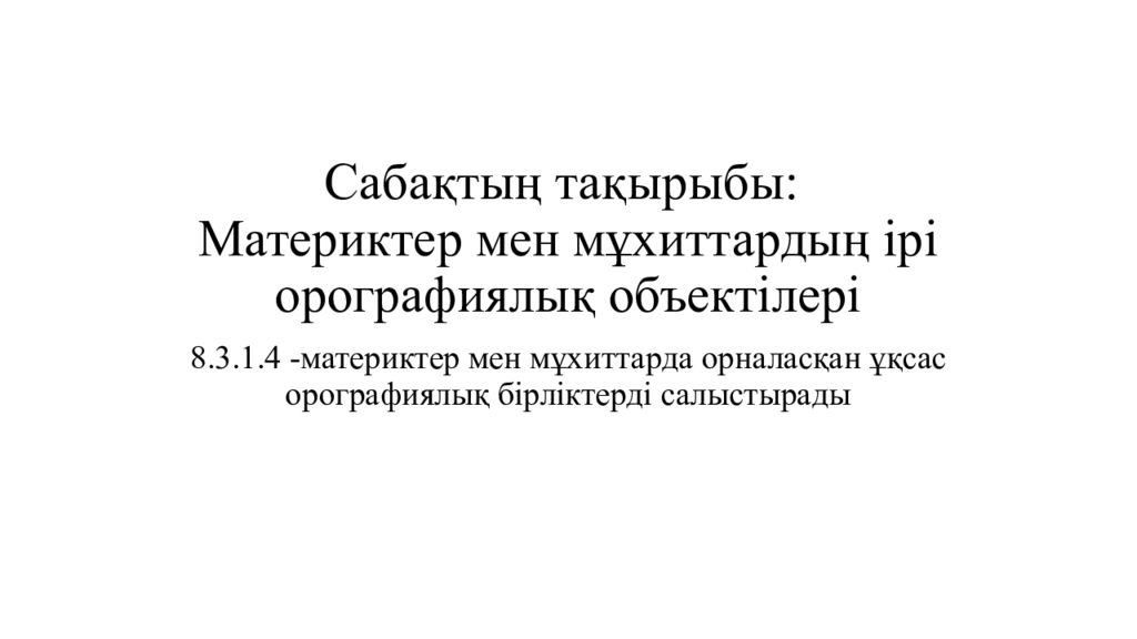 Первый слайд презентации: Сабақтың тақырыбы: Материктер мен мұхиттардың ірі орографиялық объектілері
