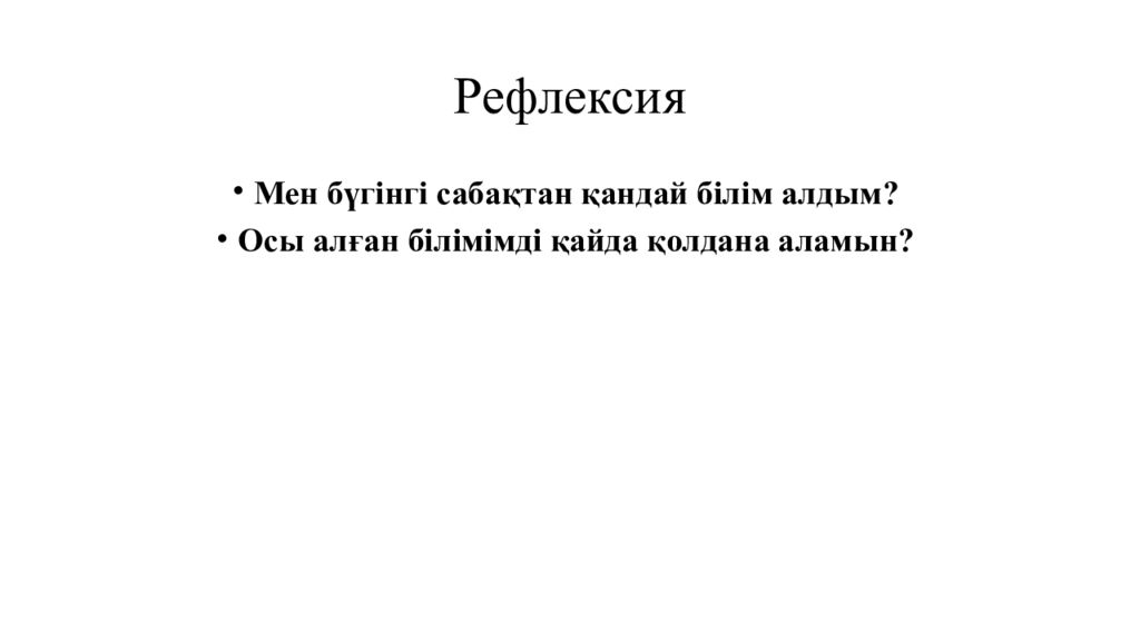 Мен бүгінгі сабақтан қандай білім алдым? Осы алған білімімді қайда қолдана аламын?