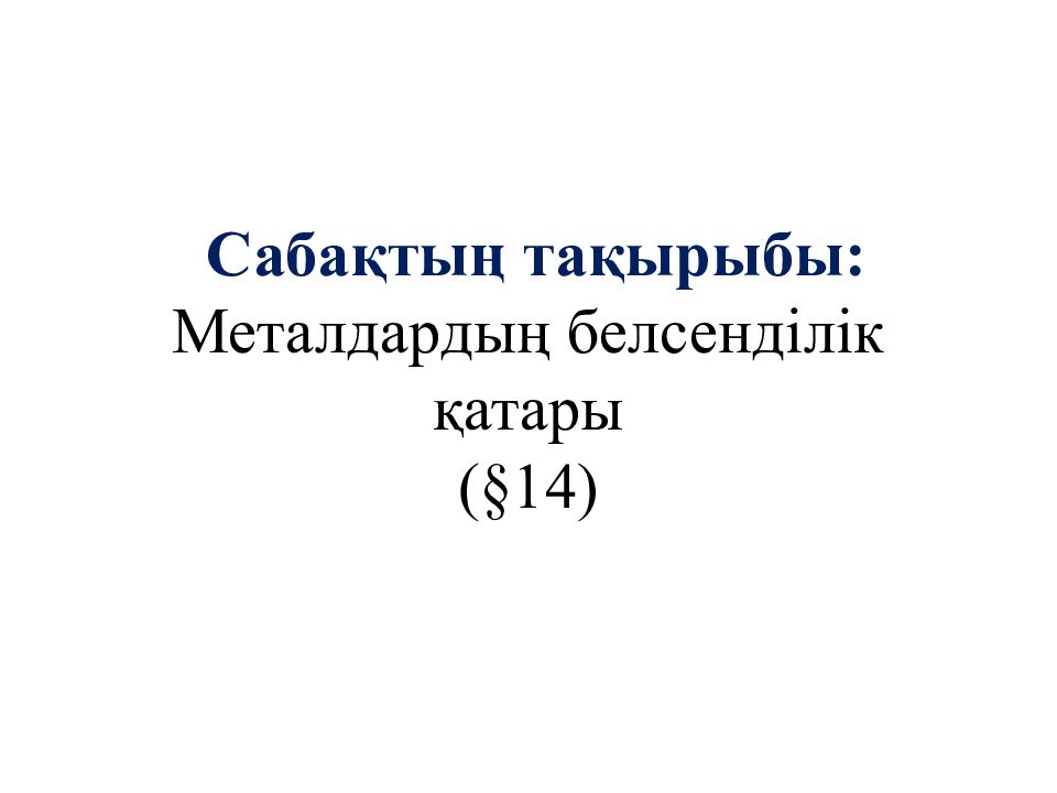 Сабақтың тақырыбы: Металдардың белсенділік қатары ( §14)