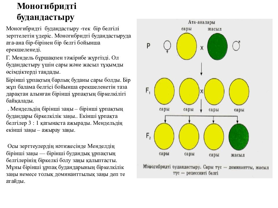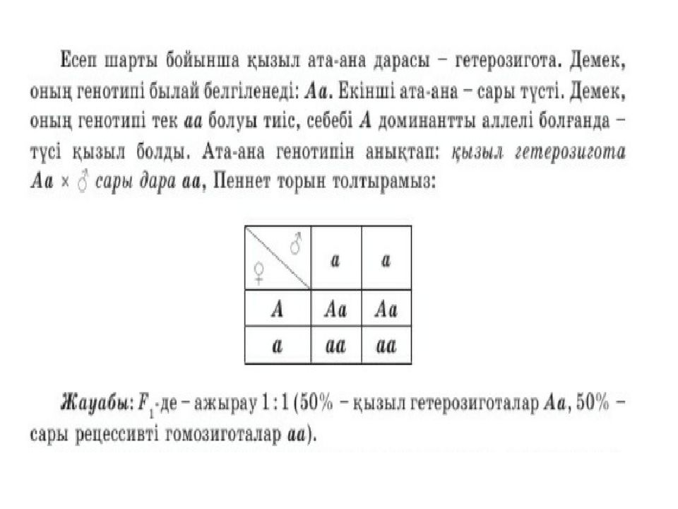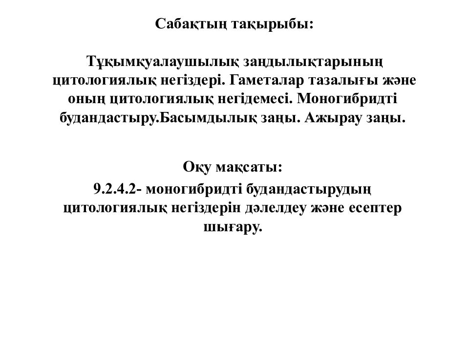 Оқу мақсаты: 9.2.4.2- моногибридті будандастырудың цитологиялық негіздерін дәлелдеу және есептер шығару.