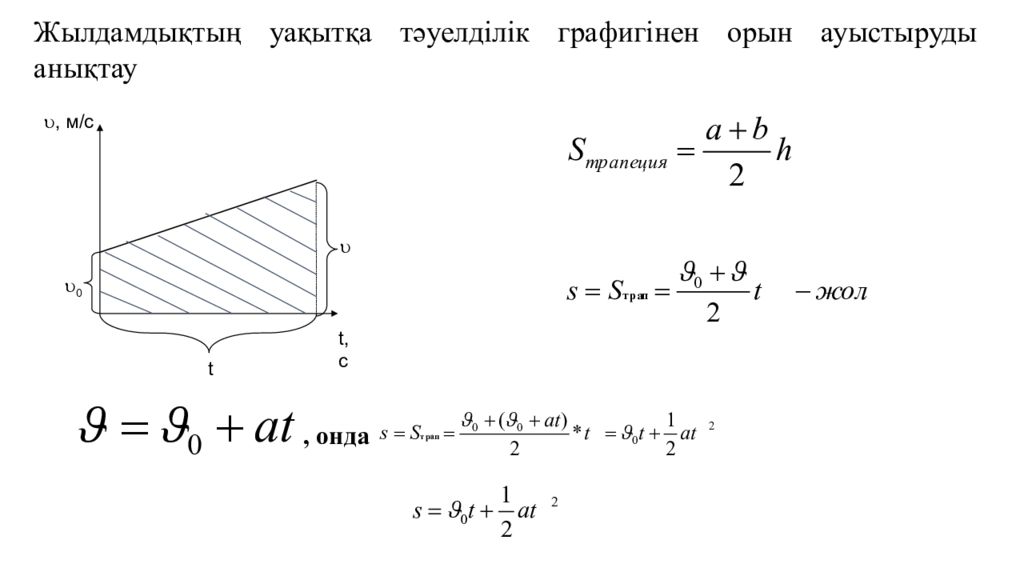 , м/с t, c 0 t Жылдамдықтың уақытқа тәуелділік графигінен орын ауыстыруды анықтау , онда