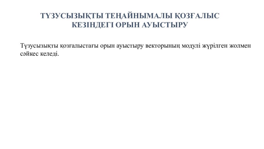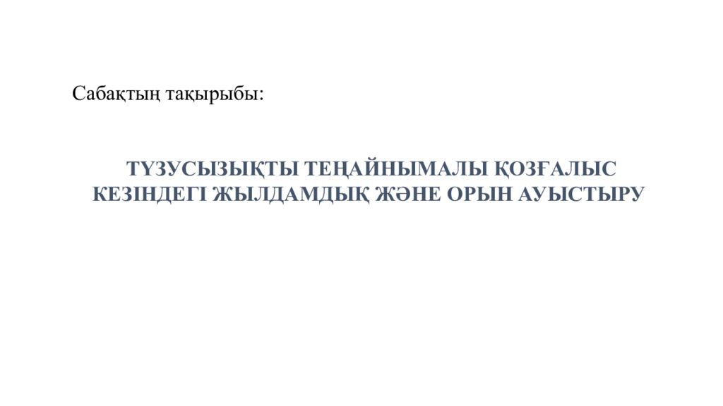 Сабақтың тақырыбы: ТҮЗУСЫЗЫҚТЫ ТЕҢАЙНЫМАЛЫ ҚОЗҒАЛЫС КЕЗІНДЕГІ ЖЫЛДАМДЫҚ ЖӘНЕ ОРЫН АУЫСТЫРУ