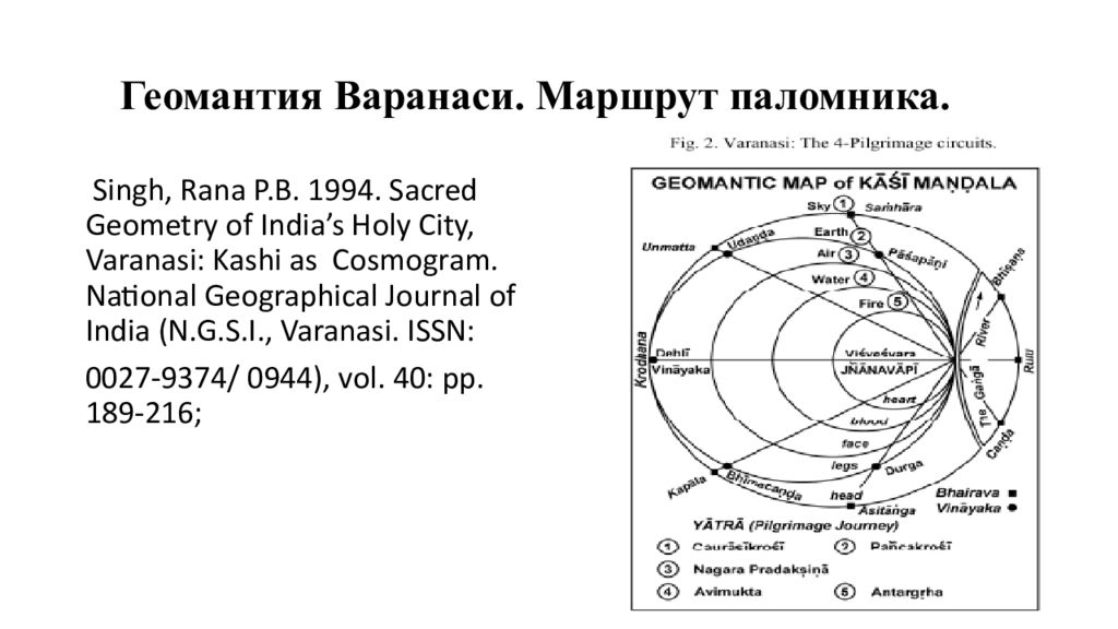 Singh, Rana P.B. 1994. Sacred Geometry of India’s Holy City, Varanasi: Kashi as Cosmogram. National Geographical Journal of India (N.G.S.I., Varanasi. ISSN: 0027-9374/ 0944), vol. 40: pp. 189-216;
